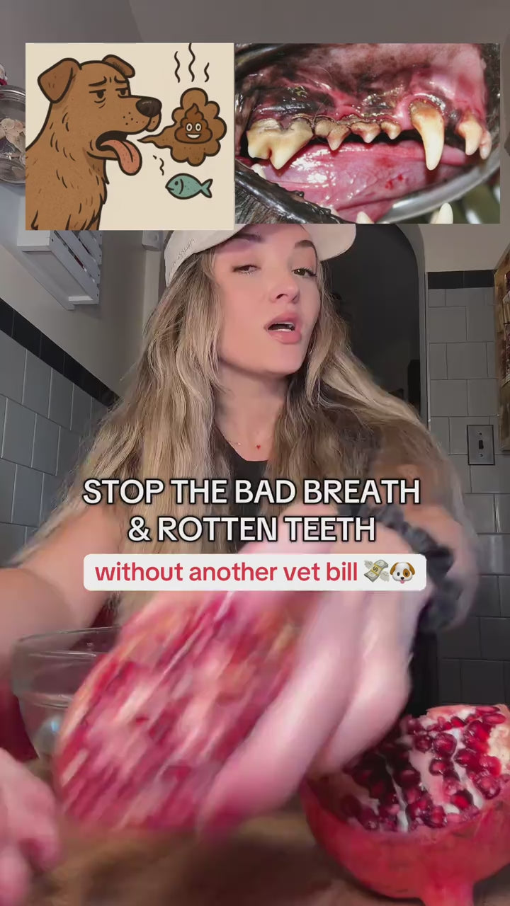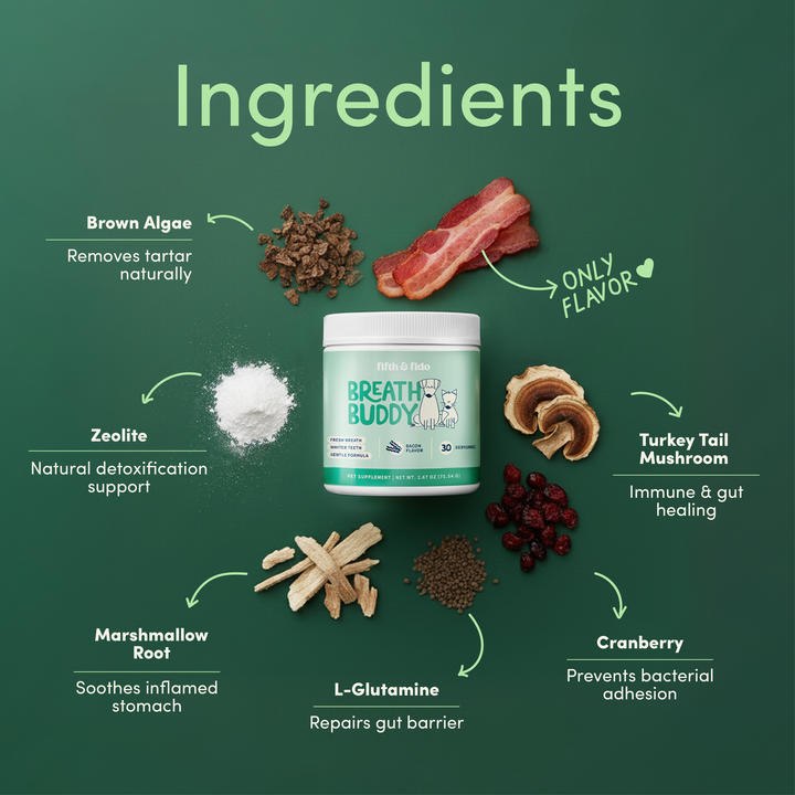 Our Brown Algae & Pomegranate Formula restores what their diet is missing — delivering natural tartar control, gut-healing L-glutamine, and marshmallow root to help support fresh breath, cleaner teeth, and digestive comfort.